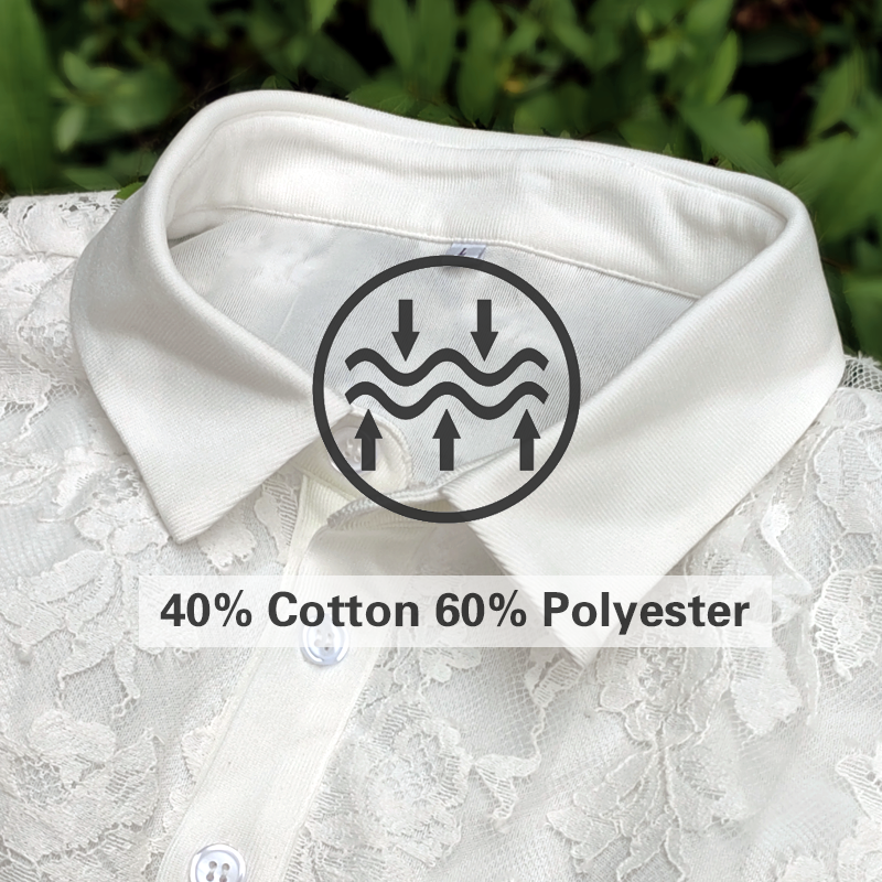 • Neckline: Polo collar with lace detailing for a touch of elegance